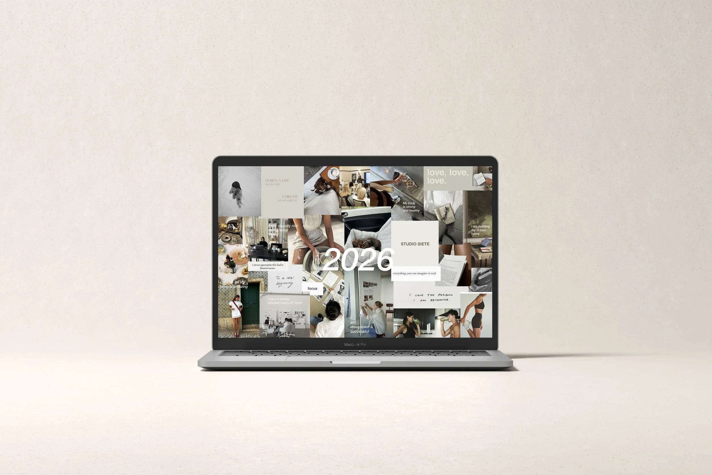 Un diseño editable para que puedas crear tu Vision Board en formato wallpaper para celular, desktop o iPad.